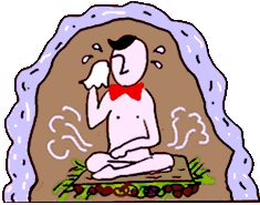 | 昔々の大昔には、もちろん今のようなお風呂場なんてありませんでした。そんな時代に生まれた人々は、大きな岩に横穴を掘ったり、窯のような部屋等をつくったりして、まずはお風呂場なるものをつくりました。そしてその部屋の中で火を燃やし、小石をたくさん焼き部屋を暖めました。石が焼けてきたら、そのうえに草や木の葉などを乗せ、水をかけて蒸気を発生させました。そうしたところで、すかさず入口を閉め、穴の中でひたすら汗を流したのです。これが昔の入浴法だったのです。今で言うサウナのようなものです。お湯の中に身体を浸すという入浴法は、意外にも江戸時代になってからの習慣だったのです。 |